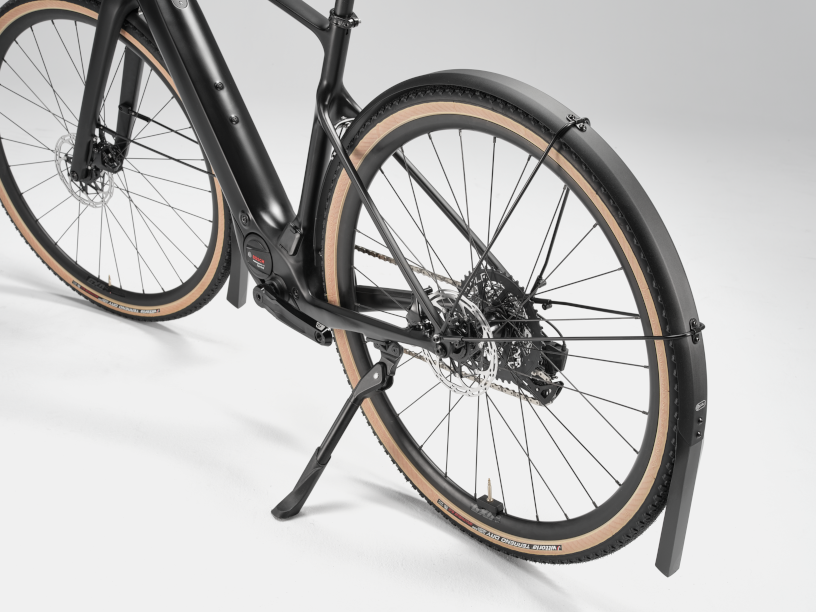 Made of anodized aluminum with oversized alloy stays, the Full Metal Fenders are a beautiful complement to any bike. They provide full-wrap coverage, even shielding your shoes and riders on your rear wheel thanks to sturdy replaceable mudflaps. Safety release tabs ensure your wheels keep turning even if debris gets lodged between the fender and tire.